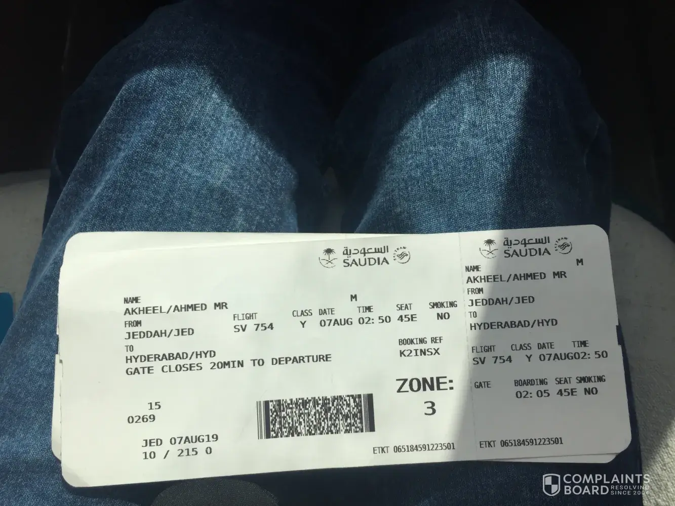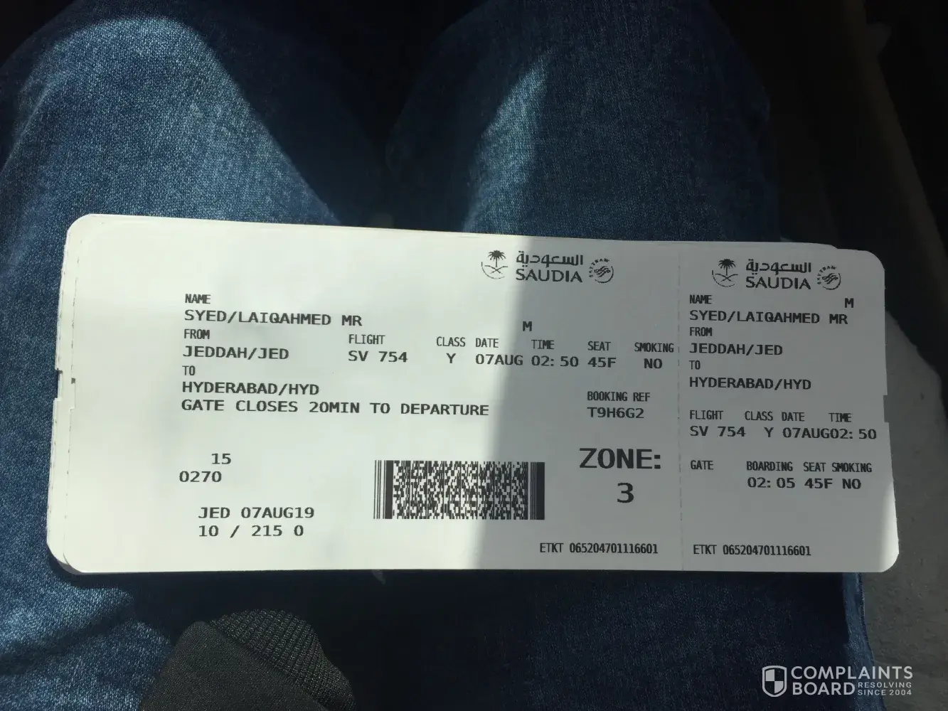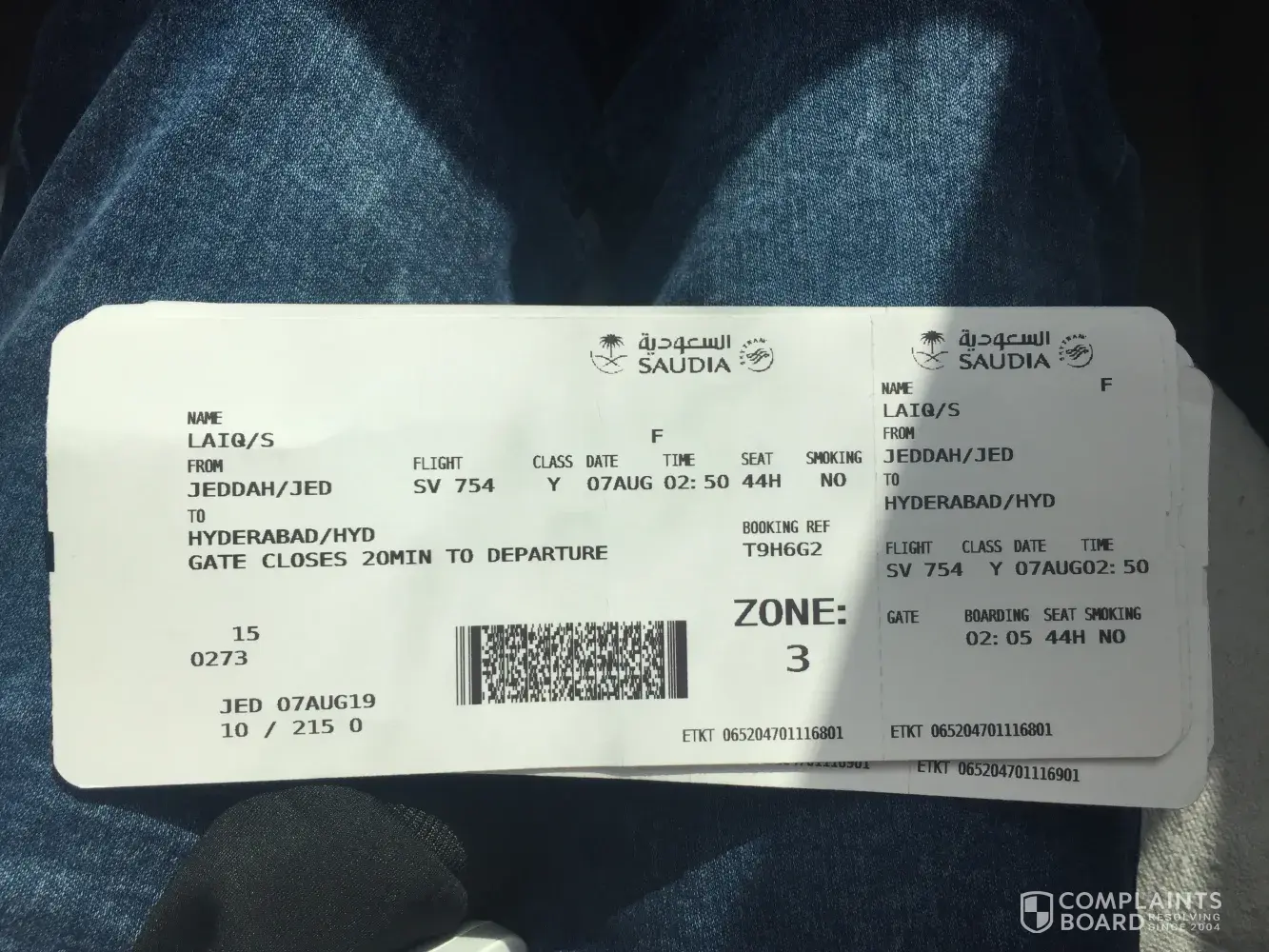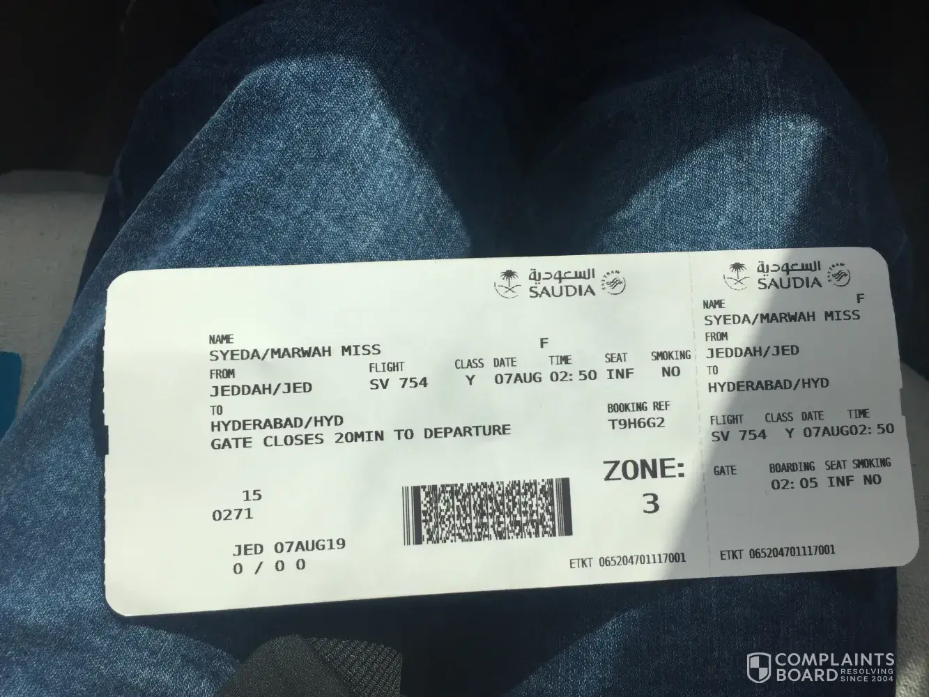 Saudia Airlines my flight was denied upon arrival to the check in desk