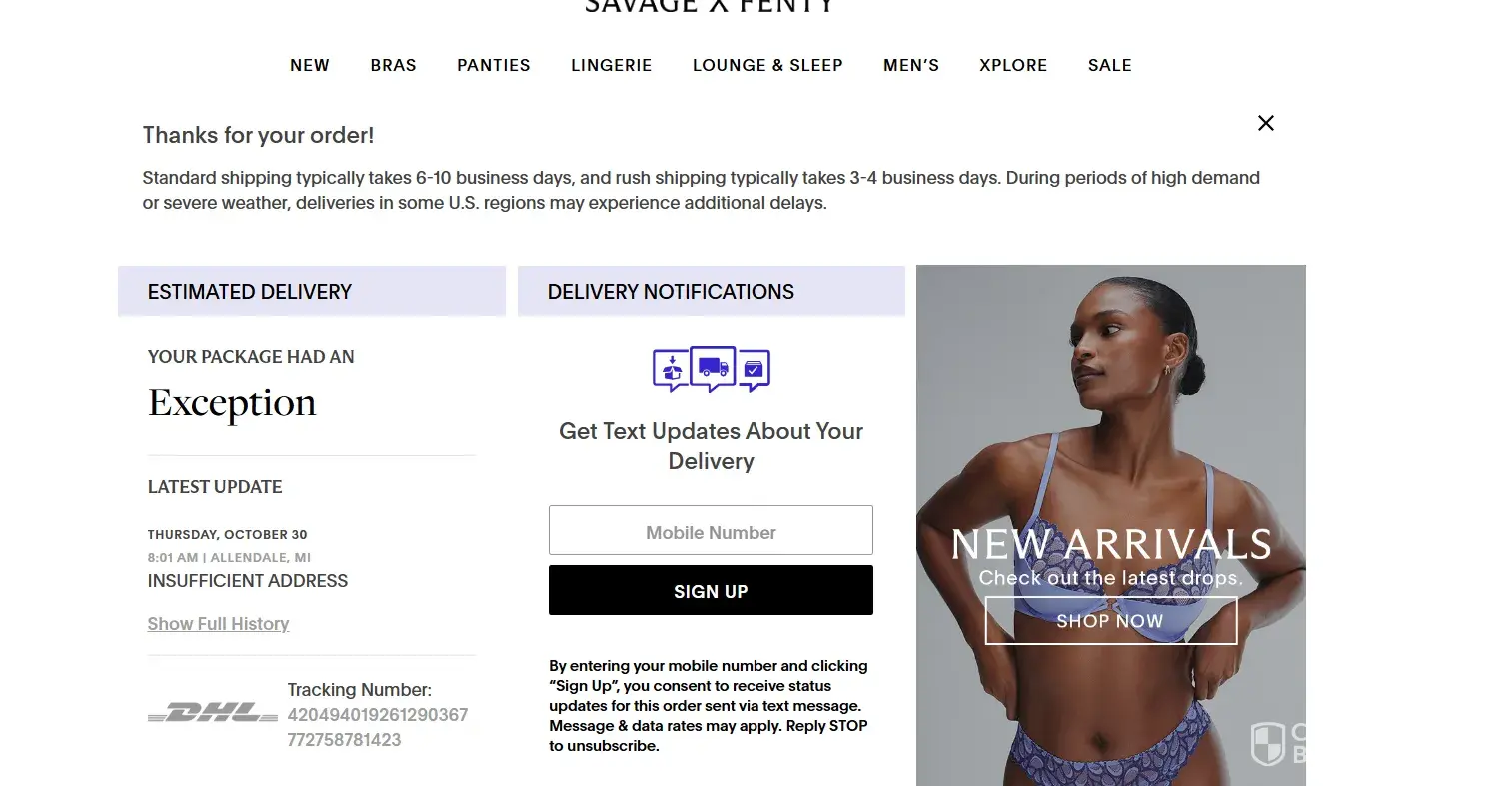 Savage X Fenty: Disappointing Customer Service and Delivery Experience