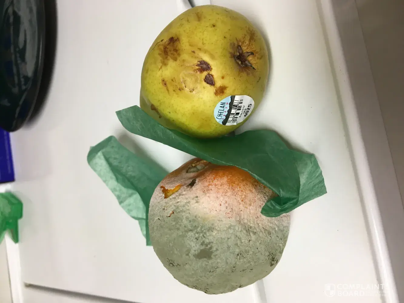 My mother Bought a Christmas fruit basket earlier today 12/19/2017, First all the fruit was rotten ( orange was actually green and oozing ), second the basket was broken, Third had all of it covered with paper and a few pieces of candy, , , I have small children that she had bought it for and they would have been serious problems if any of my children would have ate them and gotten sick 😷, And the basket could have gotten splinters from it, it fell apart like it was dry rotted ! The paper was also stuck too the fruits ! TIA