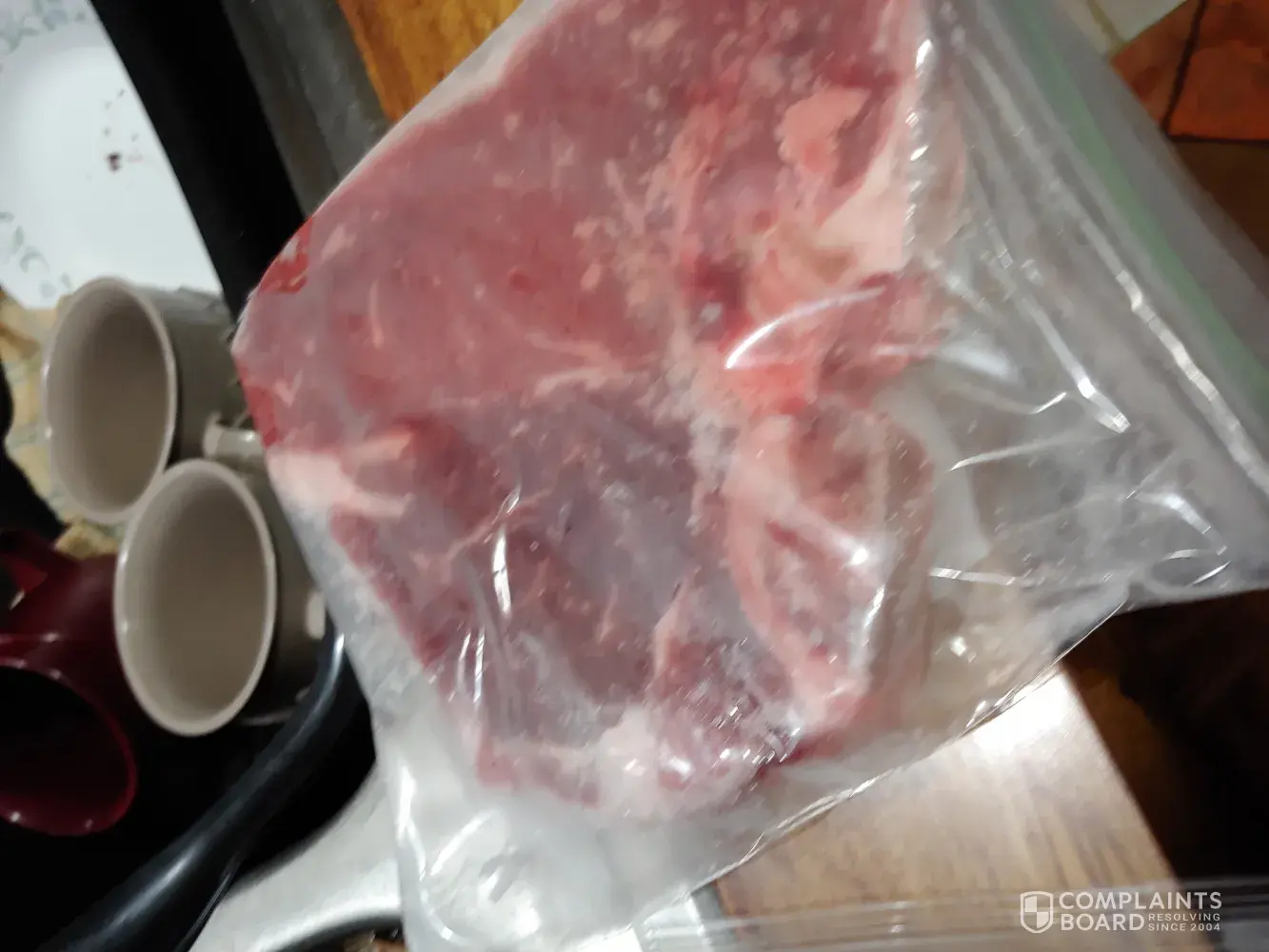 Bought t bones on sale 4.99 hubby put in freezer went to get out half of t bone stripped off bone front steak looked great back two where stripped see photos below was not happy