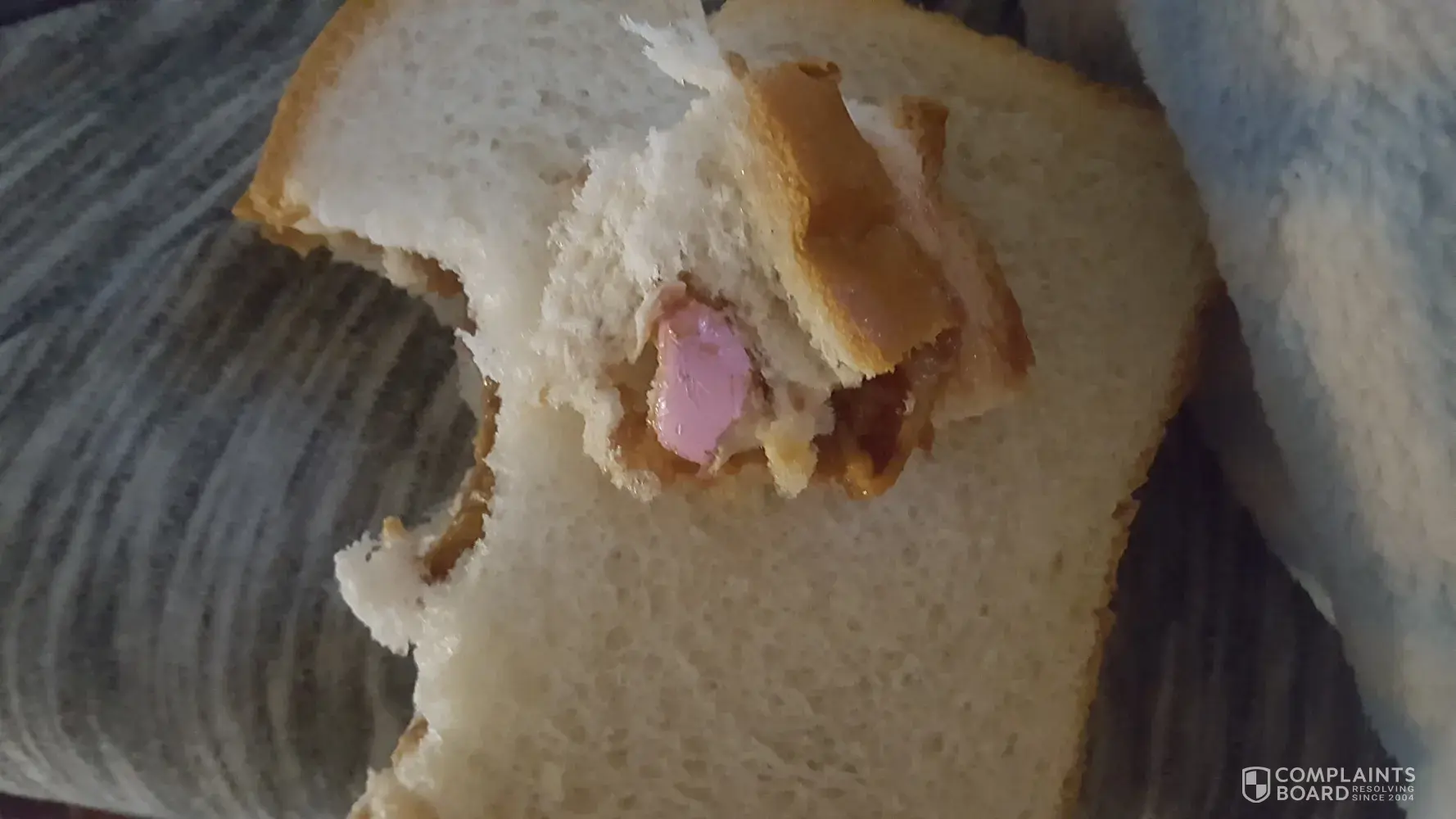 Pink HARD plastic in my container . Went to eat a sandwich and my tooth went down on this hard plastic. Glad i didnt gove this sandwich to my child.