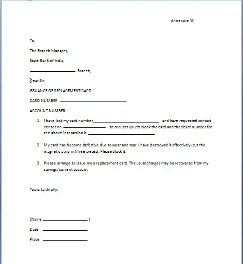 I have attached a application for issuance of replacement of ATM card.