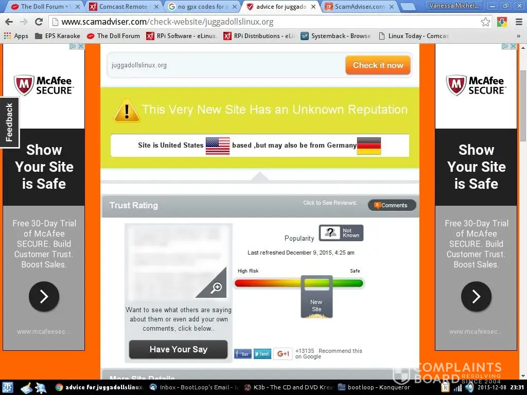 ScamAdviser said my site is "Risky"? WTF? I only spin Linux distributions so my site is safe. I only distribute them through trusted FOSS sites like Sourceforge, GitHub and the like. I'm about to make my first release of a custom Linux distro and about to submit it to DistroWatch.