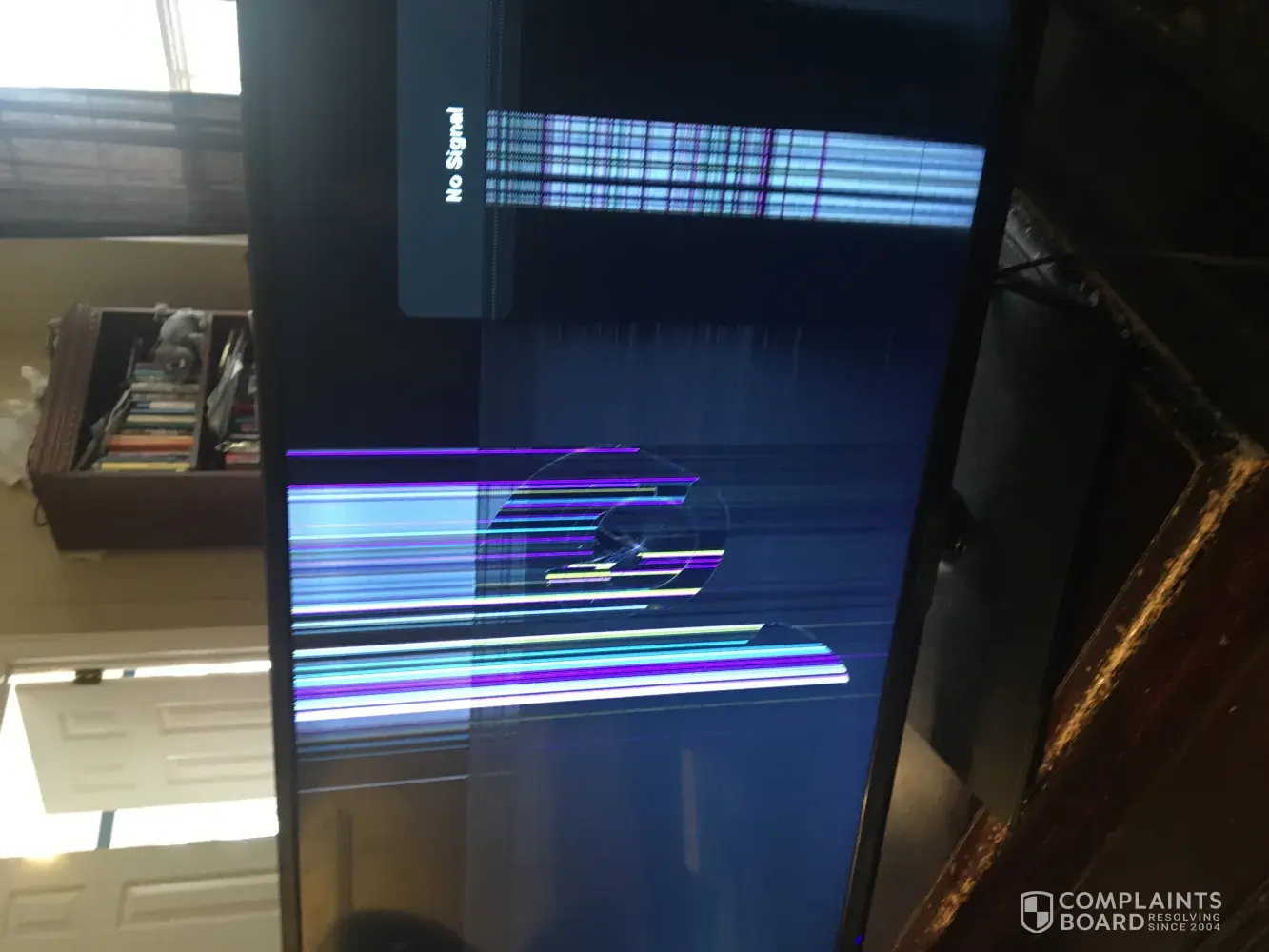 I had the exact issue with mine. Except I had mine for about 6 months when it went out. I contacted the company and they told me a few things to do and so I did those things and when they didn't work they told me too bad they couldn't help me. So I spent all the extra money I had and was left without a tv. I won't purchase anything from them again. I also purchased mine around the same time you did from the same store but in a different state.