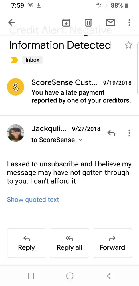 scoresense.com charged my credit card $29.95 twice.