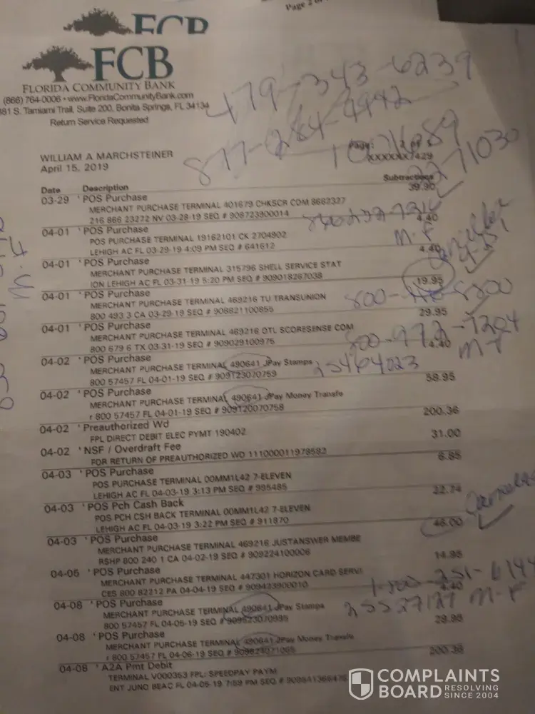 I just discovered unauthorized charges from my personal checking account, each one for a total of $39.99 from March 2019 to July 2019 (five payments total):