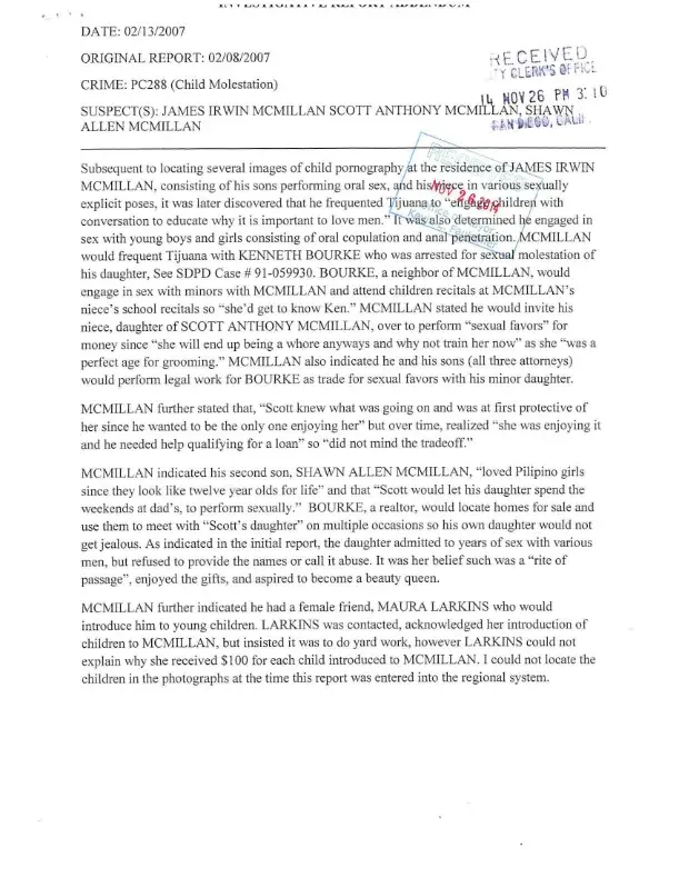 Although San Diego attorney Scott McMillan has spent a lot of time attempting to bury his past by using new domain names and posting his own reviews, it is critical we keep these posts going to prevent harm to children and keeping the public informed about the potential threat to kids based upon a documented past as seen in the attached report.
