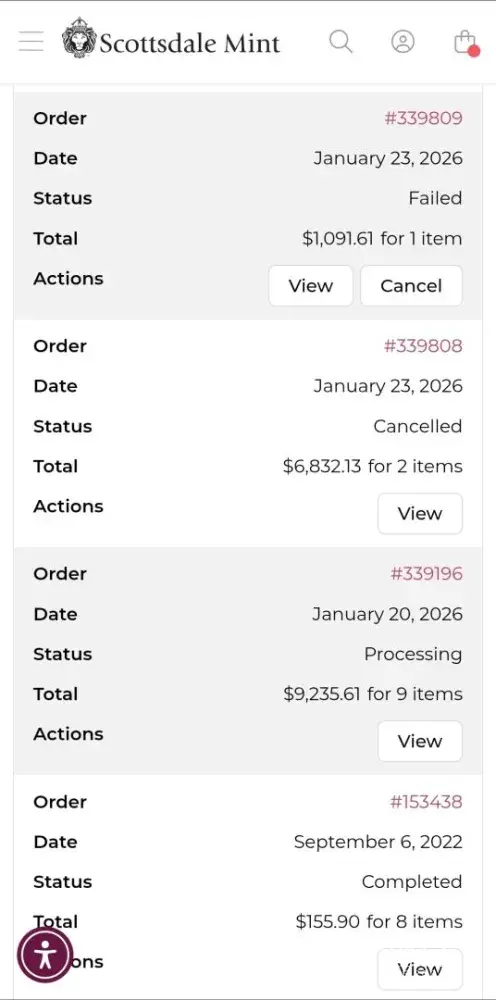 Recommendation: NEVER BUY or SELL USING SCOTTSDALE MINT.