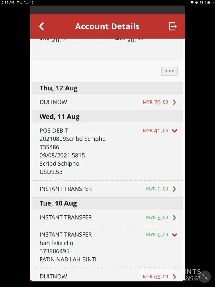 1. 08/19/2021 POS Debit - Visa Check Card 1335 - SCRIBD INC 415-2336230 CA POS -$8.99