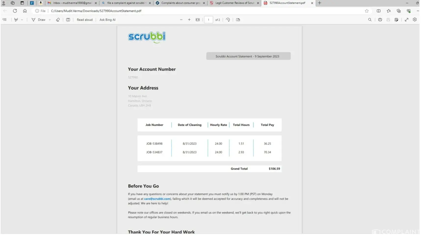 This fraud company named as SCRUBBI is the fake and Fu***** fraud company, these stupid idiot illiterate dumb people hire people as open contractor for cleaning mess in houses around GTA area for 25$ per hour and never fu*king pays off on time there Bi-Weekly never came on time and always have to email again and again and still never got money untill 27 days from u worked for 1st shift of week, and now this all m writting cz i haven't got paid for shifts done in august and today is 31-oct 2023, almost 3months complete. and still waiting for those $106.59 which were never payed.