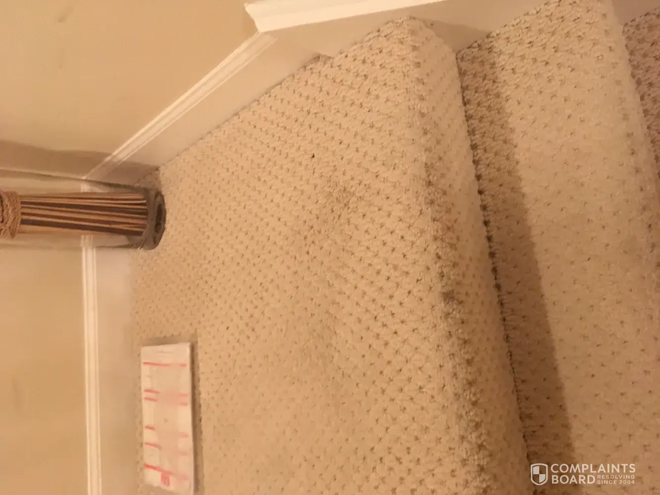 I purchased my carpet from your branch at newcraighall edinburgh and opted for delivery and fitting of my new carpet. My new carpet was fitted on Tuesday 16th January approx 5pm and fitters name was Colin. My new carpet looks great and the fitter done an excellent job however my carpets in my hall and staircase are wool and are cream colour which on the process of carrying the carpet into my property got all marked with dirt from the fitters shoes and from the carpet due to it being folded in half outside (said the fitter) so the dirt transferred to my carpet. As it was wet and snowing . The fitter also struggled to carry the carpet u the stairs and I have a tight bend in the staircase and the weight of the carpet did not help as a result all my walls are marked which are also cream . To be honest I think the carpet was too heavy for one person and that is why I opted for delivery to leave it to the professionals . My carpets are not new and you can see that but I live alone and there are not any visible stains on them until now the fitter attempted to rub them off with a piece of carpet which did not work and told me leave until they dry they will hoover off but they do look very bad and I am reluctant to do anything until you see them. I took photos while the fitter was in and I wrote on the job sheet as I am disappointed with the damage although delighted with my new carpet.