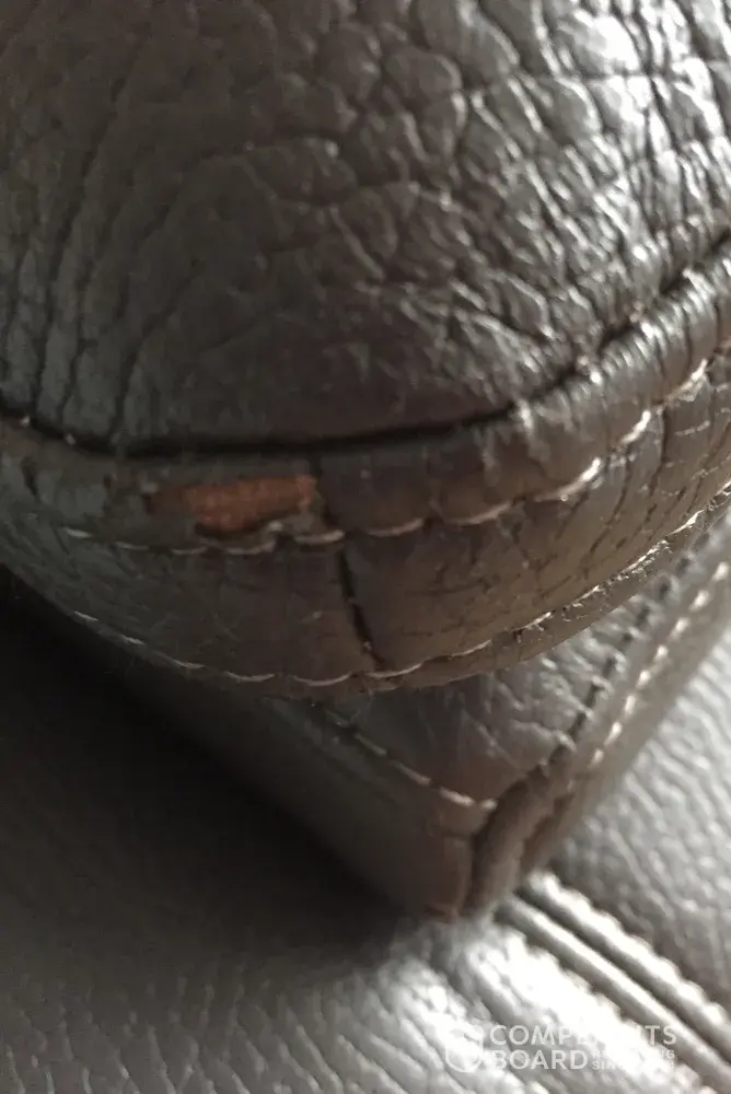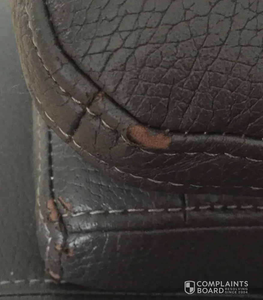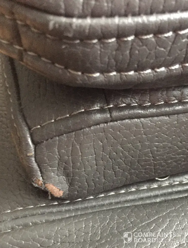 The 3 leather on the 3 seater couch is peeling off very badly in several areas (no issues on single chair or 2-seater) (see attached photos).