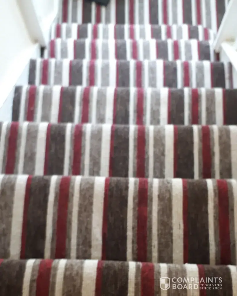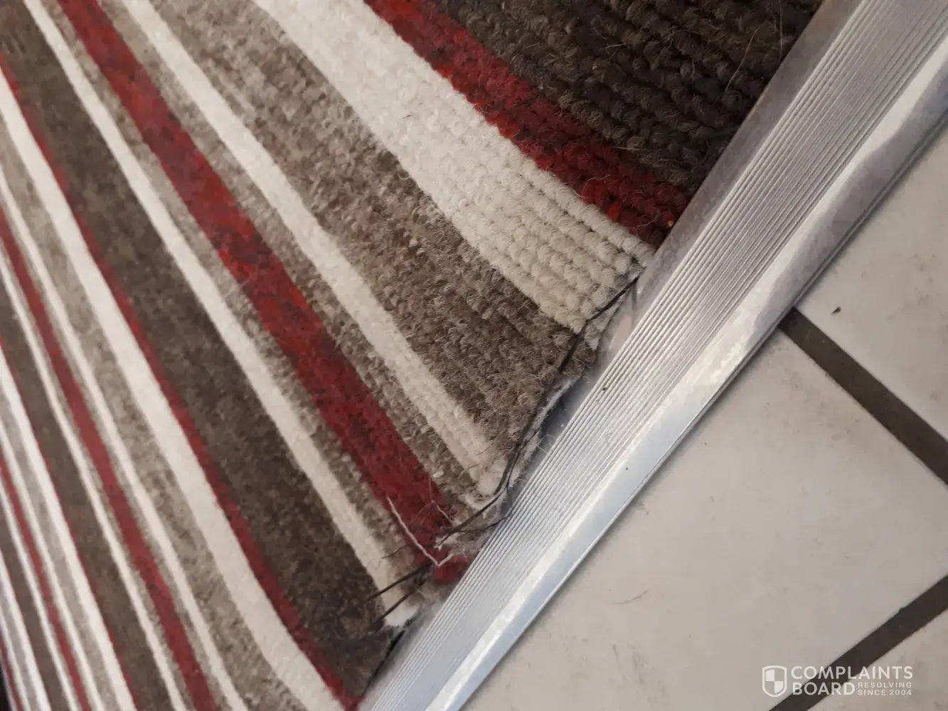 Hi, my partner and I recently purchased some carpets and a table and 6 chairs, the table and chairs have now been delivered and are fantastic, I wanted to wait for these to be delivered to see if they met standards which they do, however I cannot say the same about the carpets as they are horrendous, the carpet s have loads of imperfections. On the day we paid the fitter £250, I highlighted to him the door bar to carpet into hallway was not great and he made attempt to make good, although it was better it was an incorrect bar fitted as I will show via pictures, then after I hovered the trimmings and fluff away it was then we really saw the extent of the poor quality, the edges are all over the place and not gripping in many many places, the stairs are horrific with stripes not lining up and carpet peeling away from stairs in 2 areas, various holes everywhere, we can no longer close the bathroom door due to the door bar, the carpet has clearly been cut short in Ares as it pulls out of door bar in the kitchen just by walking on it, to say we are unhappy would be an understatement as this is a new carpet and we are now paying for it for the next 2 years, I would appreciate this to be resolved but I can assure you that someone popping in with some adhesive spray is not going to cut it, I also want to avoid getting into a legal issue by hearing we took an agreement with the fitter as scs supplied the fitter simple as that so no way on earth could we take responsibility for him although a very nice chap, a friend of mine who is a fitter has looked at it and stated it clearly needs replacing due to the various faults in all areas, to be honest we are quite embarrassed about the whole thing as guys in the Cambridge were great, I do wonder though whether the underlay which we paid £8.99 m2 are compatible with the carpet as the whole thing appears so thick. Also we can see the join in the hallway when standing more than 8 feet away, we would be grateful if this matter be resolved asap.
