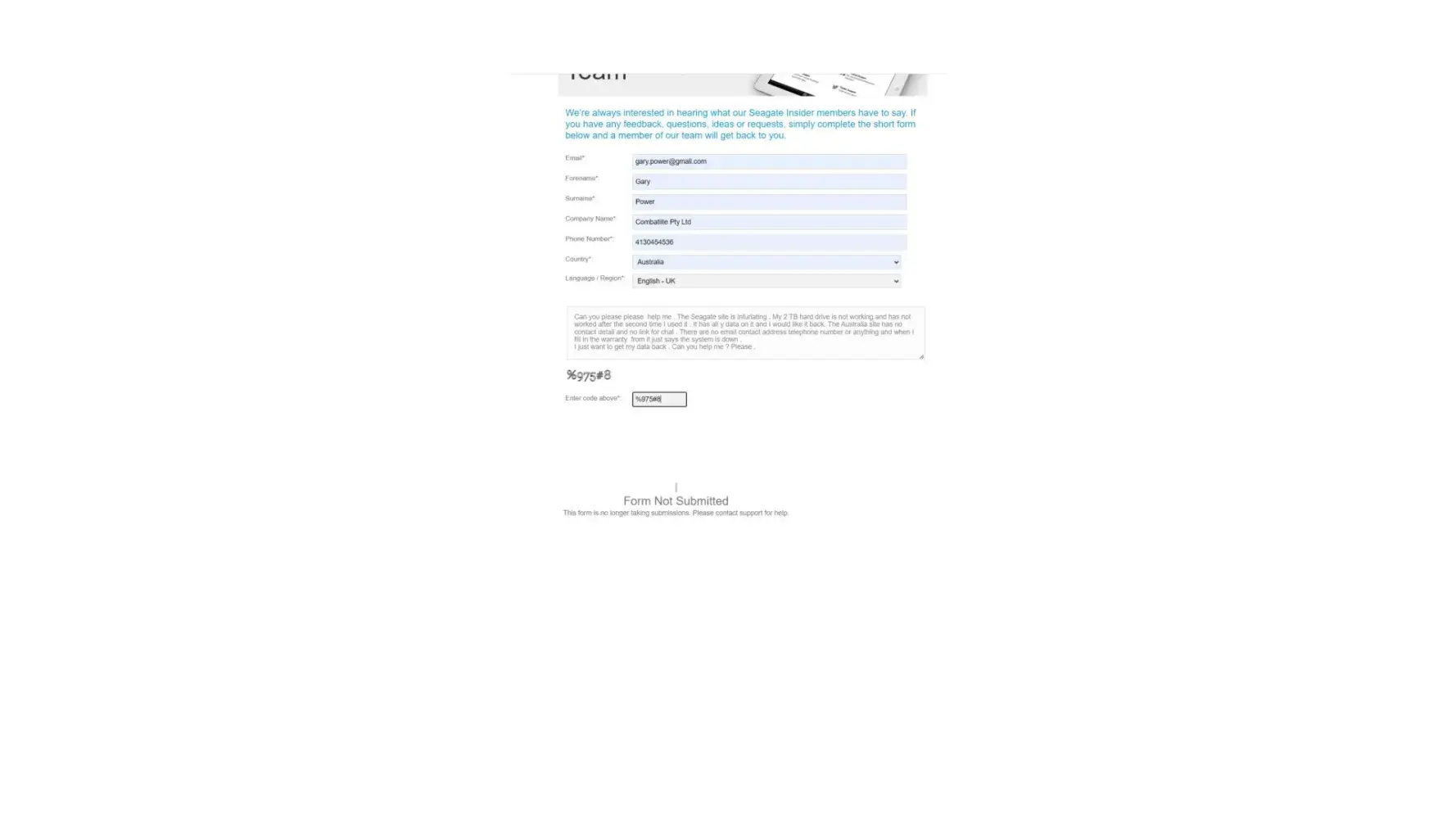 1. Using the website, to verify my drive is in warranty, it is and that I'm entitled to data rescue. I am able to confirm both. Once I select Data rescue I am told to contact support at the above webpage which doesn't work. I tried signing into my Seagate account. That produces the same result.