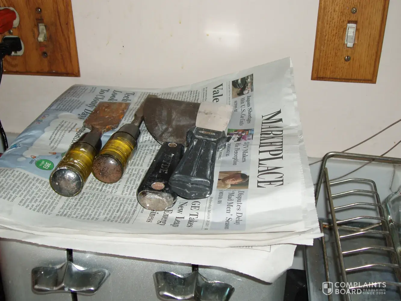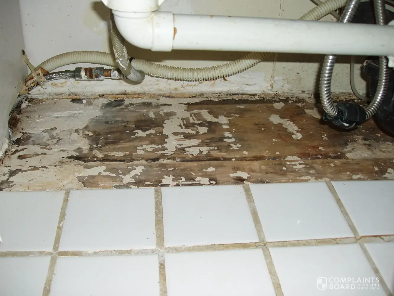 When a Sears Technician hooked up the water dispenser line in 2008, I was not aware that he had not checked his work for a leak! The leak was so small that you could not tell. In addition, it was installed under my sink-the water line and a valve-so that small leak was not noticed. Eventually, I detected an odor coming from beneath my sink on March 29, 2011 and when I removed the items from under the sink, I saw mold and the tiles that were installed under the sink were all loose. When I began to remove them is when I saw how extensive the damage was. At first, I thought I had a plumbing problem so I called my plumber. He could not find a leak until he added some water in the sink and placed a blue pill in the water. When he drained the sink, he showed me where the leak was coming from: The Sears installed hose and valve had a very tiny leak, which is why it took years to notice the damage. Therefore, on March 30, 2011, I called Sears and I reported everything as described above. They scheduled a technician for 4/5/2011 between 8:00 a.m. & 12:00 p.m. He showed up and immediately asked what was wrong with my refrigerator! I said nothing was wrong with my refrigerator and once again explained the problem! From there it all went downhill and I was so unnerved my blood pressure-I nearly 68 yrs. of age with high blood pressure-began to rise so I asked him to leave. I called Sears to complain and eventually after many transfers and always having to repeat my name, address, tel. number and my complaint, I was sent to what they said was the Damage Claim Dept. who seemed to be sympathetic and a lady named Teresa gave me a Claim number 103800 and said that they would call me back in 24-48 hrs. for status. Well that never happened and for two more days I called and eventually wound up in a 'Black Hole' and no one could find the Claim number. I was truly upset; especially after a person by the name of Licio Navas transferred me to dial tone! With that, I called back and cancelled my extended warranty. The proceeds will be use to fix my problems. In addition, yes, I still cannot use my water dispenser and I used a portable heater for over 48 hrs. to dry out the wood-tiles were removed-and walls beneath my sink. Having read about some of the many complaints regarding Sears, I now know I am not alone in realizing how dysfunctional Sears has become-especially their installation, repair and Customer Service A.K.A. Customer Harassment! In the photos, you will see the damage, the bucket of tiles removed, the goop that was removed, the tools that were used and the heater!