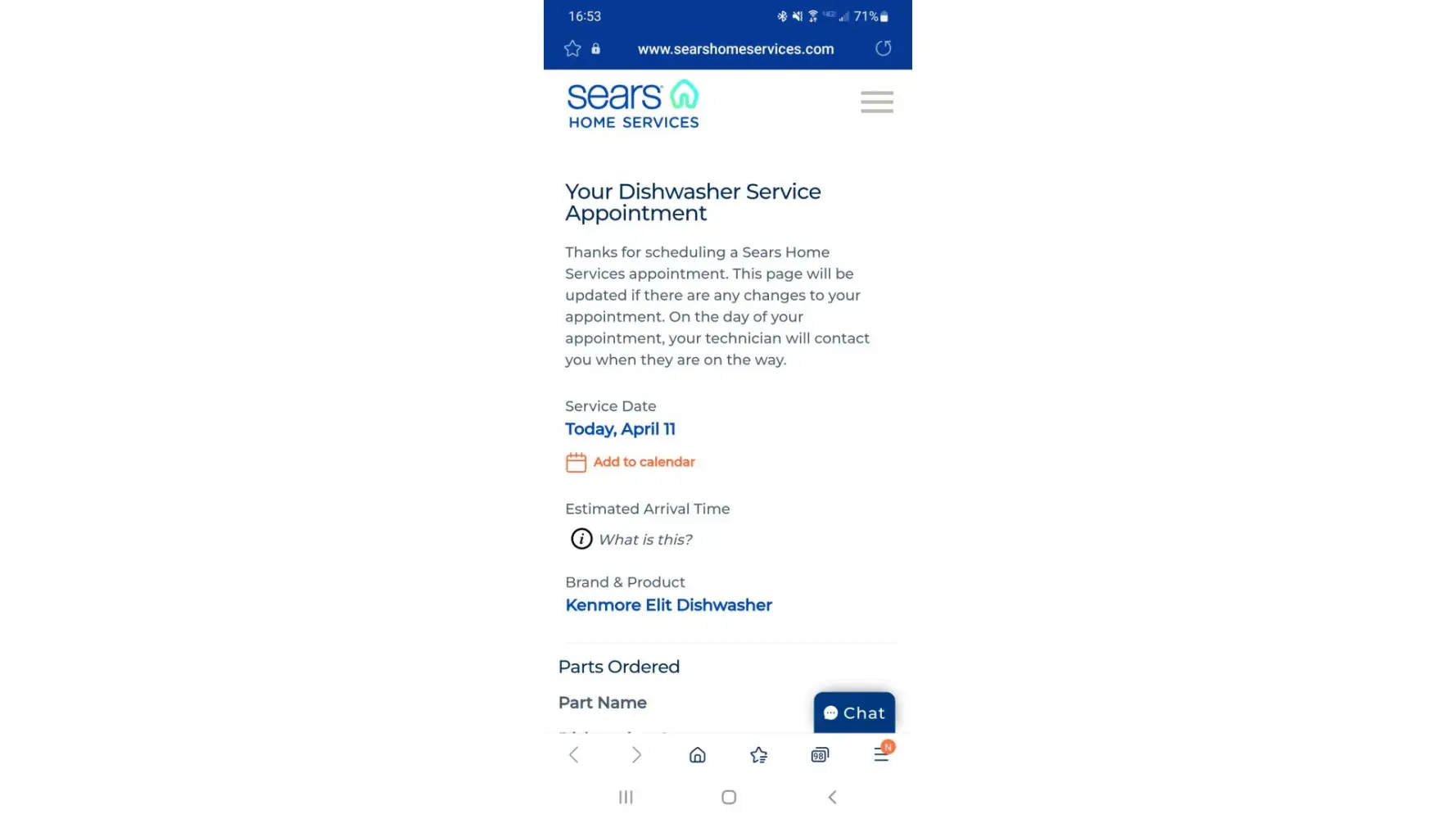 4/20/2022-still have not heard from sears email or phone call. Called their home services number, recording said the board has not shipped yet.