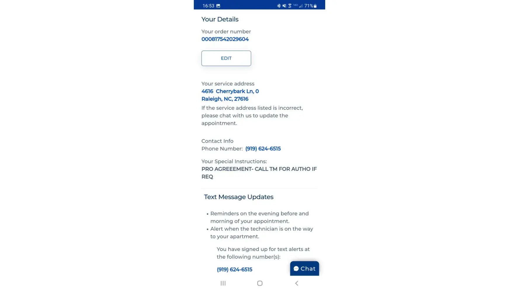 Two online chat conversations with a rep and a phone call to a rep - all promising to have someone call me back - has not rectified the situation and no one has even called back. At last, the best thing done so far is they moved my appointment from April 19th to April 18th.
