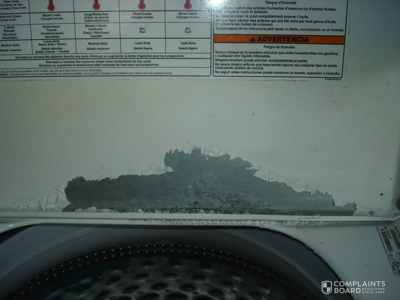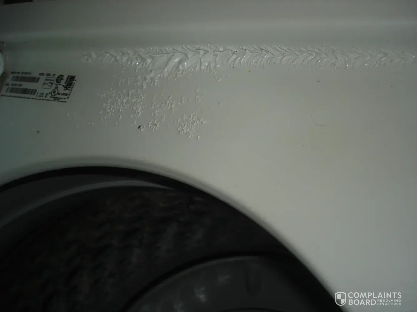 I purchased a Kenmore HE low water washer in 2015 from Sears and within one year the paint on the interior of the lid and the loading area began to bubble. Now the paint is just peeling right off. The warranty doesn't cover cosmetics which this is considered. The paint is not baked enamel on as done with appliances of the past. It seems to be more of a spray on job.