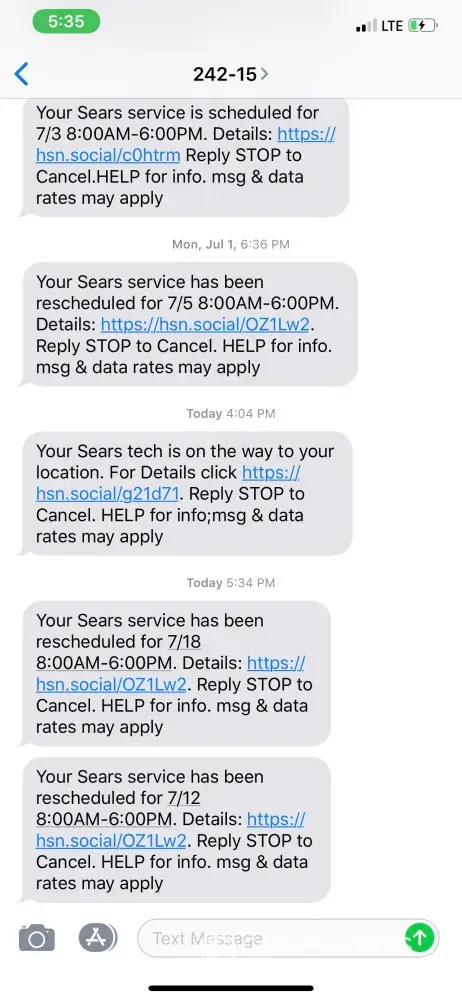 So I contacted Sears again: