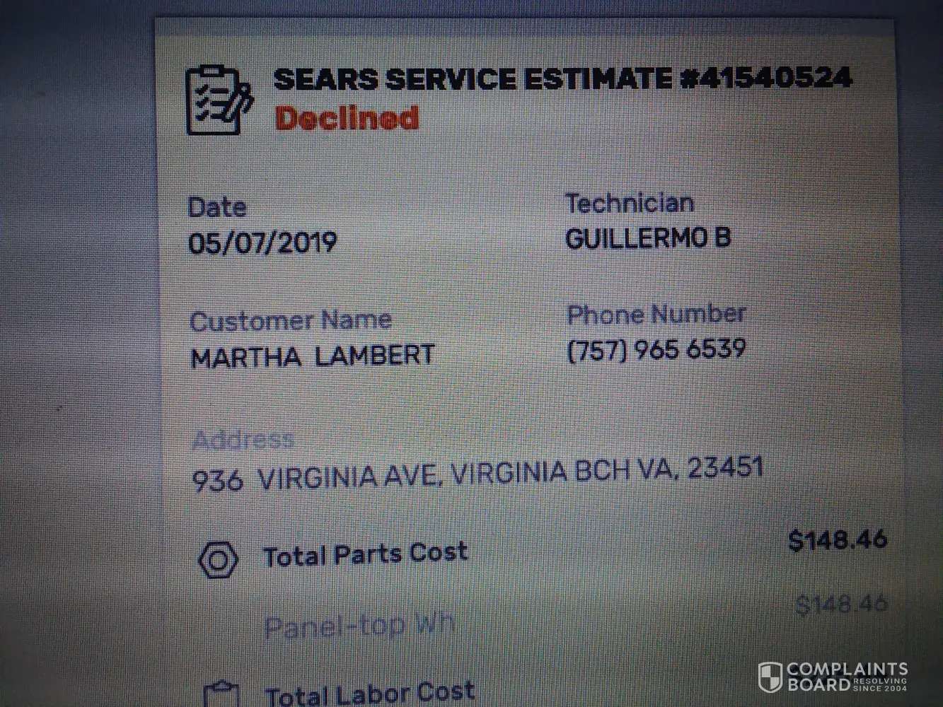 Lastly, it is disappointing that Sears does not have a system in place for complaints. The only number available is an 800 number that appears to go to a call center in another country to associates who have no authority to help with customer service issues or complaints. Soon, it will be a month since I first called Sears. So far, I have a new part I did not need, I've paid more than $300 for parts and labor, and my oven is still not working.