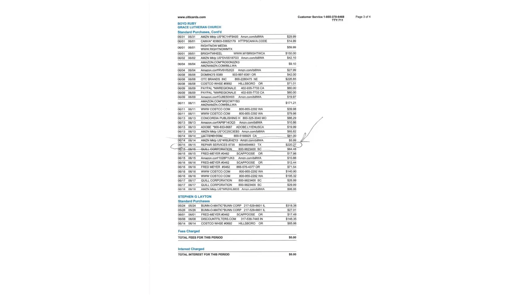 We paid this by credit card which was posted 6/15 on our CITI Visa card.