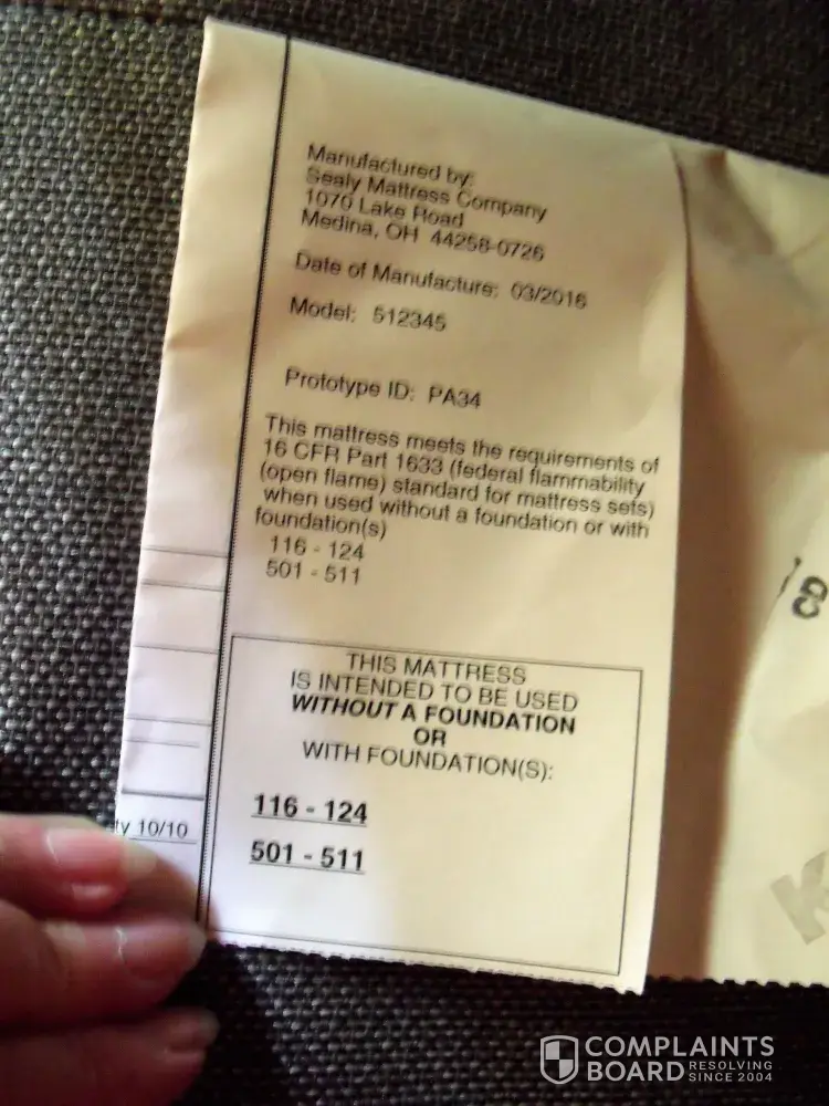 I am not a scammer I am complaining about the mattress I bought and it is no good I have more pictures to prove what I am saying and I also have all details and tried and tried to call sears and sealy and no one wants to get anything done that is why I came here to see if I can get this taken care of . I am not being rude, I am not being dishonest but trying to see if I can make sense where it is being taken care of in some way for to let people know or company know more it needs to be replaced .. I have every sales, every e-mail, every picture, every thing shows this mattress is no good and I am getting a run around where they will not honor the warranty of this mattress it is under 10 year warranty and I bought it in 2016 and it is not a good mattress from the first day I received it . I been trying to tell them and over and over tell them . They know it is a bad mattress or they would not blame it on other things causes it to be that way .. it was from them and it should be taken care of. come to find out the label on the mattress is from a store they closed down (see in pictures) I ordered this on line . this is what they sent me not as it was advertised to be . or up to what I ordered . for some reason I cannot on here add more pictures or I would . But I have sent to both sears and sealy pictures . Lots of them.. they know and still they are over looking .
