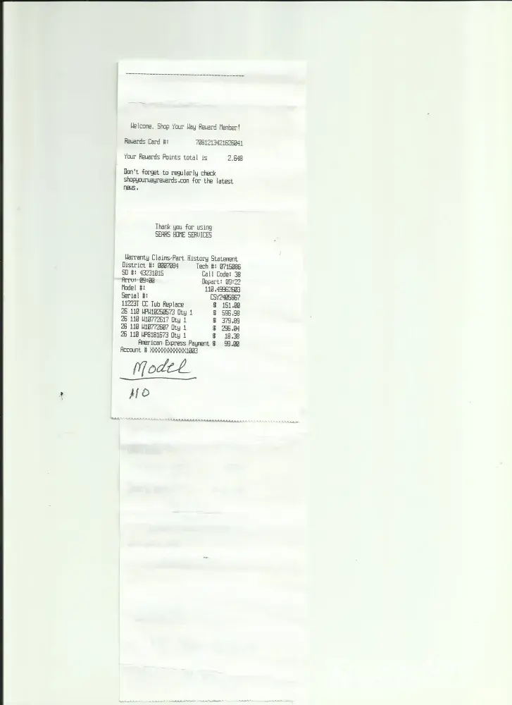 As far as the little box goes, I was informed later by a Senior technician (See Service call #4)that this is just a sale gimmick used by SEARS to hook customers, He also told me that he, himself called that number for service, while on a call and was put on hold for over and hour. He was then told by the service technician on the other end of the phone about the little box being a sales Trick.