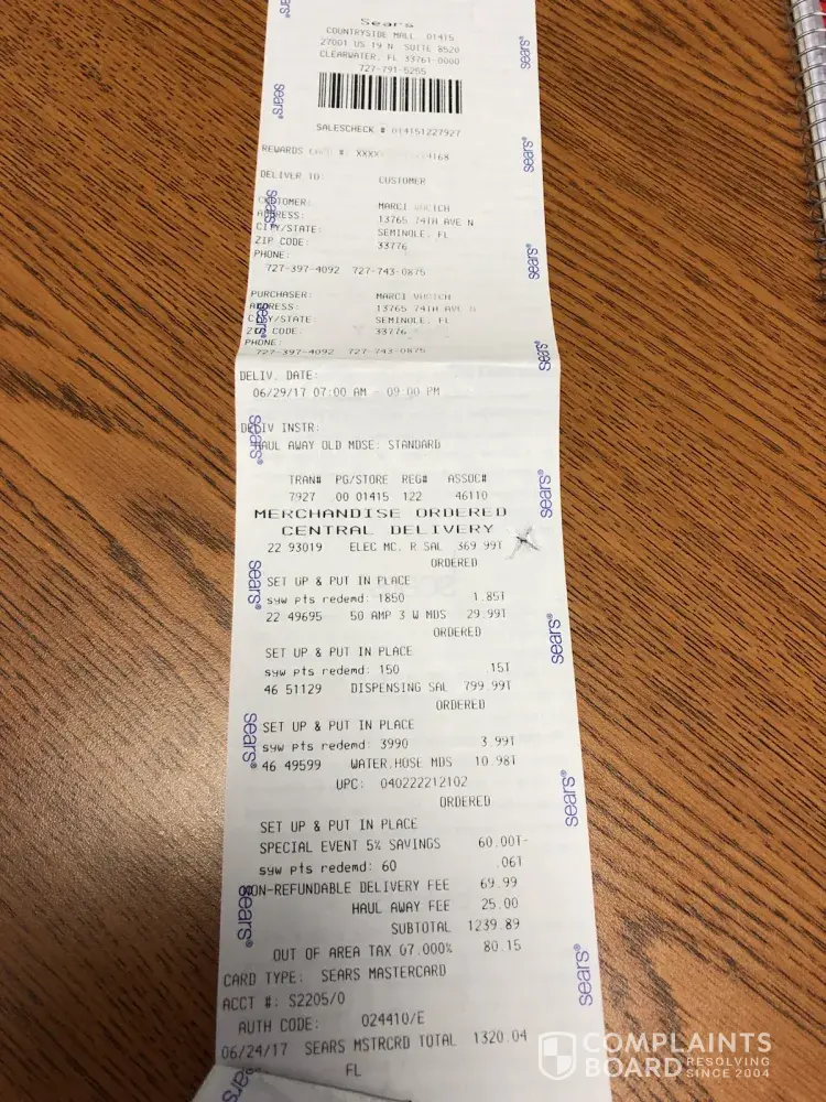 Did you take a moment to contact Sears' service? Did they, in fact, confirm the price being charged was correct? If they, in fact, were to quote you a lower price, then it would be easy enough to address.