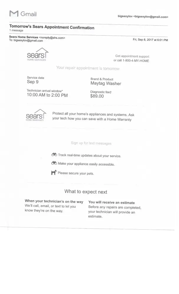 sears home service - diagnostic appointment