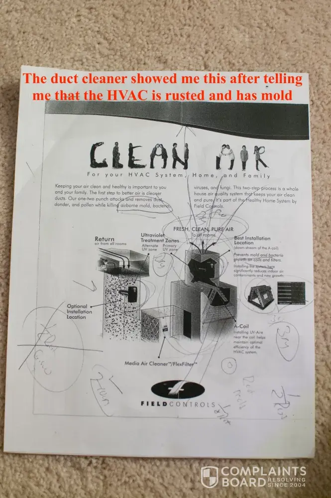 After I had internet installed in the house, I found multiple posts that share very similar experiences. I was also unable to confirm what the cleaner asserted that the uv light can keep the a-coil dry and rust free. I do not understand a company like sears can allow this kind of unethical behavior from their contract workers.