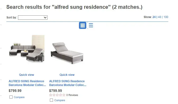 Website shows (sears.ca) 2 pictures, one picture of a Patio couch complete set, named Alfred Sung Residence, Picture includes all peices for 799.99, then another picture shows up with just the lawn chair for 799.99... WHICH one is it? FALSE ADVERTISMENT. Manager said they will call their IT dept to rectify the issue but we have not been giving the price of 799.99 for the whole set. See website picture attached.