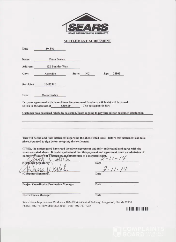 I will never use Sears Home Improvement again nor will I ever recommend them. Although the sub-contractor they used was excellent, the services provided by SEARS themselves was completely lousy. They advertise that they take over all the project management-wrong. I finally got so disgusted I took it over myself. They don't answer messages or emails in a timely manner. The sub-contractor informed the so called project manager that some of the carpet had to be ordered from the manufacturer and that would delay the start of the project. The so called "project manager" was supposed to notify me about that. He did not. When I complained and asked for consideration (in the form of a discount) for all the work I put into the project, I was told by the office sales manager that the district sales manager would review the file and contact me. I never heard from him. I filed a complaint through the Florida office and after the first contact I never heard from them again. Not responding to the customer seems to be the operational standard for Sears Home Improvement. To top that off, the project manager called when I wasn't home and my husband backed up the fact that I did so much of the work myself. What did the project manager do? He threatened my husband stating that he would send the bill out the following week and if we didn't pay he would send it to legal. NEVER ONCE did we ever say we weren't going to pay. SEARS-A name you can trust? Forget it.