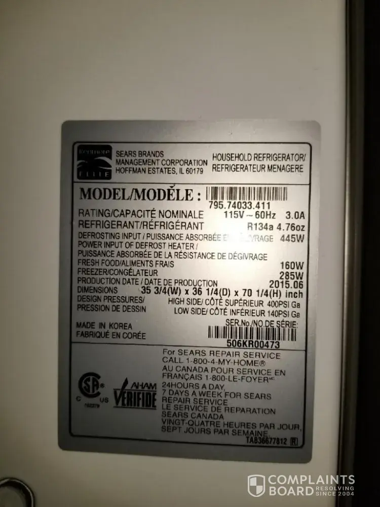 I again called Sears Home Service on April 5, 2018, I was told that an email was sent for All Keys Appliance Inc. to contact me, still no response for an update was received.