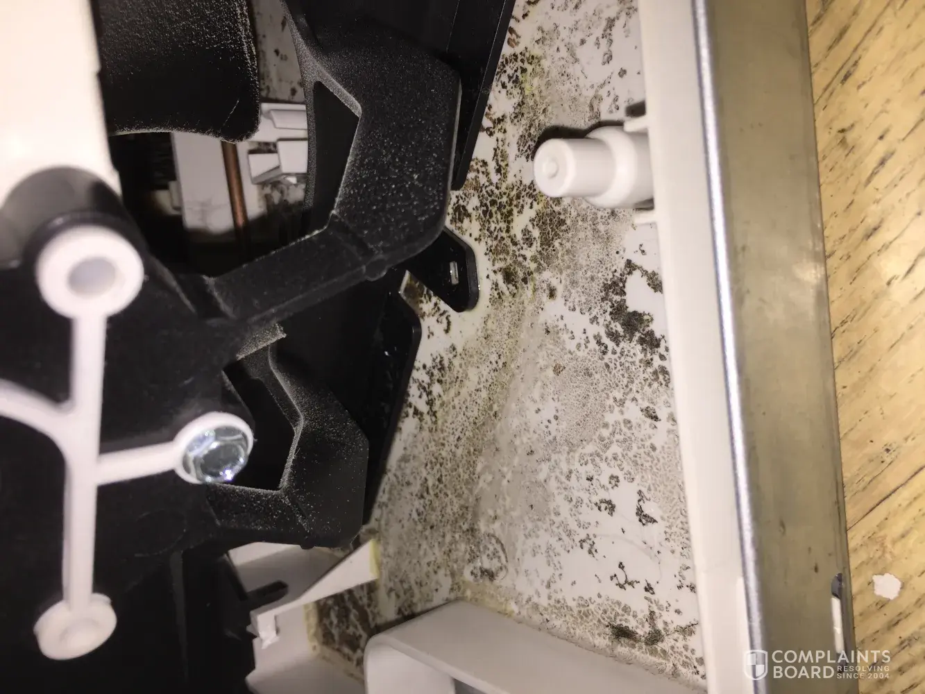 We purchased our kenmore elite french door model [protected] in 2013, after 6 months that dead animal/vomit smell was coming out from the sides of the refrigerator since it was slid within cabinetry. we thought it was the wood floor rotting behind the refrigerator at first but then I pulled it out and removed the bottom back cover to expose to fan and bottom tray to find a molasses type brown sticky paste all throughout the bottom tray of the refrigerator. sears came out a ordered a pan to replace on my brand new refrigerator. the plastic pan was delivered to the house, but with further research, the way they wanted to replace the pan was to tip the refrigerator on its side to do so. that's a no-no with compressors, you don't tip them on their side. sears eventually replace the refrigerator... guess what? it's happening again! that brown pastey molasses that smells like vomit is back. let's see what they do now... my attorney is on standby.