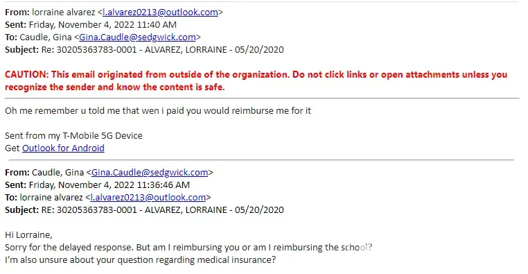 My claims examiner Marilyn Mack had been unresponsive to my questions. She contradicts herself thru email and will not take my phone calls so we can discuss my case and my concerns. I am being paid but my providers are getting very rude responses from her. I was contacted by One Call Care Management which is a vendor of Sedgwick. They set up my PT appointments and after 2 appointments Sedgwick denied payment to the PT by saying I could not set up the appointments myself. I explained to Marilyn that if was her company/vendor that set up the appointments. She continued to say my PT was not in network. I have been leaving phone messaged for her that are never returned and emails are short and vague and does not address my issue