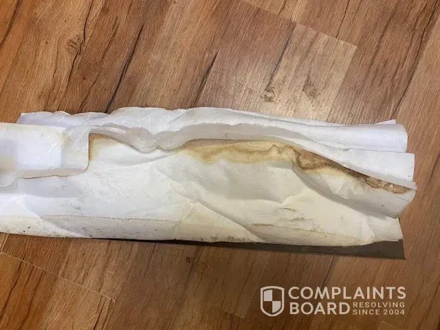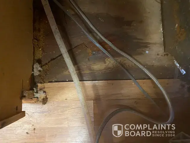 3/31/21 - Sears Home Services made a dishwasher repair that resulted in flooding and damage to kitchen floor. 4/12/21 - We noticed the flooring appeared to be "squishy" and coming apart. 4/16/21 - A different Sears repairman confirmed the parts were not seated/installed correctly.