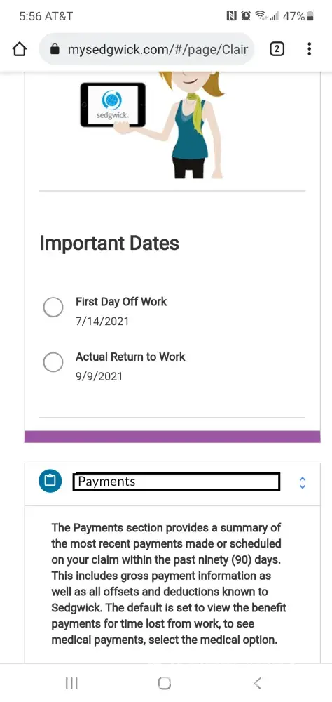 I have submitted certified form from my Dr T Nelson on the dashboard that I am unable work bc of CDiff and can't get cured! My Dr talk to Segwick fax documents and Segwick said that all is good! They aapoved me from 1-31 January just now they saying I get paid from 1-14 and from 15-31 I am not getting money! How it's can happend? When all papers are in the system! I have send from Dr Nelson on Friday the 29 th January one more certified papers saying that I am off bc my disability to work from 11/28/20 till 2/14/21 and also send a new paperwork from gastrologist that they trying to cure my CDiff and hernia and nothing works so I need to be off till they figured out! I am taking last 2 month antibiotic and nothing! I am constantly living in restroom! I am sick and tired to fight with Segwick! First they never send me a certificate papers for my doctor I was asking million times on the dashboard and nothing the they respond saying they faxed it! Never happens! Finally my wife find papers somehow and we send the to the dr! Segwick never help us with it! We have tried to call I spend 7 hr on the phone with Segwick they said they call dr Nelson. It it's never happens, I took my cellphone and drive to se Nelson and spend 2 hr waiting to call Segwick finally some girl pick up and said that she need to talk to the se she did and said all is good! De fax her certified papers! Now today on the 30 th I am checking dashboard and suddenly I see information that I am approved from January 15 to 20 but without pay! What is going on! I am sick on this some bacteria! I am under Dr Nelson and Dr Angela Nutt! I am taking pills trying get cured! Thais bacteria in my age is a fatal and it's damaging colons! Plus stress with Segwick which one living and sabotage all case is unbelievable!