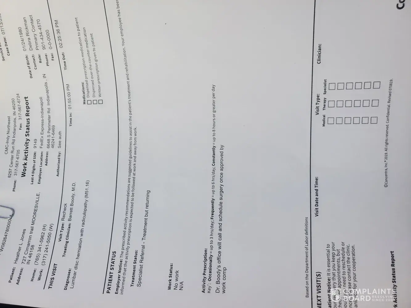 Everytime I go to the doctor the man handling my case puts me as returning to work before he even gets my doctors note. I always upload it the same day as my appointment. My lawyer has asked for paperwork more than once for the something and he is still not hearing back or receiving what we need. My pay is not right. I work 44 hours at 20.44 because of the 4 dollar premium. Without the premium I would make 16.44. I am not being paid my 2/3 like I should be. This whole time he has had me at work with restrictions and that is not true at all. I have been off work. Also I have mailed in my mileage and the other paperwork back in Aug and never received my pay for my mileage. I have more mileage that I am keeping track of to give to my lawyer.