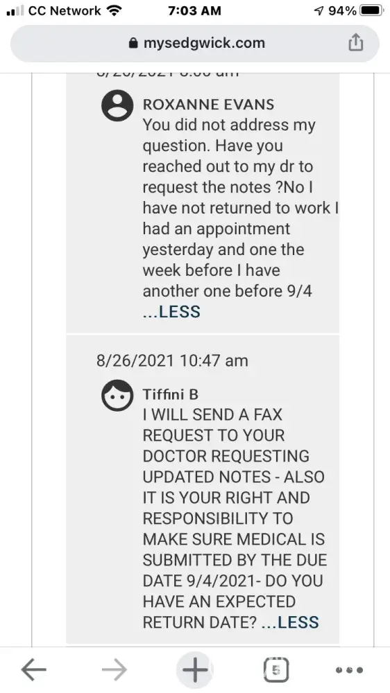 Every single time paper works due the ball is dropped month over month my case managers never request documents needed from my doctor I am constantly having to call and be on top of the process my documentation is submitted in a timely manner every single time I have to call and beyond somebody to get it escalated because we dropped the ball no letters go out to me letting me know whether it's approved or not approved I have to just guess and keep on it every single month every time it comes time for my approval I don't know that it's not approved because until my supervisor sends me something that says oh you were supposed to be back at work today then I have to get on the phone escalate your customer service reps are rude not all of them my case manager Tiffany B is very rude I requested Tiffany have her supervisor call me call never happened you could look at my request month after month requesting for a supervisor to call me I've spoken to one in the many times that I've requested a supervisor to contact me my doctor has requested my return to work date when she will release me as December 1 she's requested this month over month every single month it's It gets we will approve you to this date so I'm constantly having to get documentation and I have to be on top everything it's very stressful have anxiety and panic attacks I am doing everything I'm supposed to do taking my medication going to the doctor take trying to take care of myself this adds so much stress and anxiety to me because I can't breathe constantly wondering if it's going to be approved if it's not gonna be approved if the drop all‘s going to get dropped and I am really unhappy with this process I have never had such horrible customer service been treated so badly I think my doctor knows better than a nurse when I should go back to work! I am asking please for somebody to review my case see how many times month over month I've asked to speak to a supervisor see how many times the ball is been dropped something needs to be fixed her with this process this is not ideal for people especially going through mental health to have to deal with these kind of things and have the ball dropped every single time there been times when I have not gotten paid because the ball is dropped I have bills to pay and kids to take care of and my mental health to try to take care of so I can get back to work how can I do that when every single time I have to give you guys something I have to be on top of you to do your job please help somebody a manager of the nurses manager I don't care who is manager to review this and approve it for the timeframe that my doctor requested so that I don't have to deal with this every single time it's time for approval because it's very stressful when you guys don't do your job