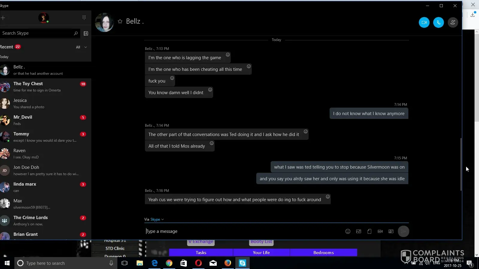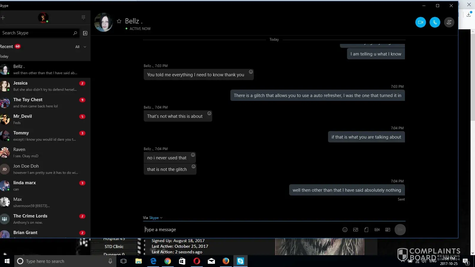 Bella I will play anything you want to play, I know what the Glitch was about now, at the time I talked to you I did not, never did my partner ever send me items and I received more nor him get items from me and receive more and yes I did give someone money for Bogo Items before I admitted that quite some time ago, that was discussed before and Scorp sure as [censor] was at my house as were a few other people from SC, I hate training myself let alone other people. Go ahead and list what you want Bella, you tell a lot of stories, I can show so very many stories you have told, would you like to see them? How about I post screenshots about the free VIP Leperchan Boxes you claimed you had gotten and had to wait until after the weekend to open with MOS? Or how about when you changed your Skype because you were afraid Max would screen shot it and show it? You have told so many stories to so many people, played so many people...and lied so much. Had I have realized that you were lying about getting all the free [censor] to begin with I would have never gotten nearly as pissed off as I did, again I feel sry for you because anyone that knows you knows thats your skype, its your damned picture. Don't you ever get tired of constantly back peddling?