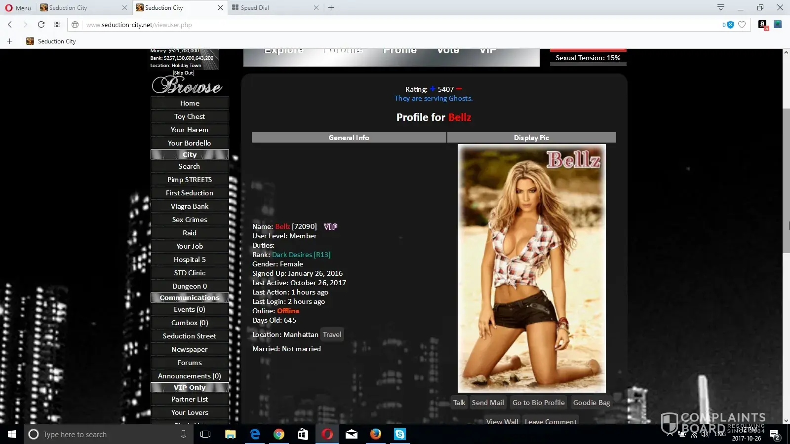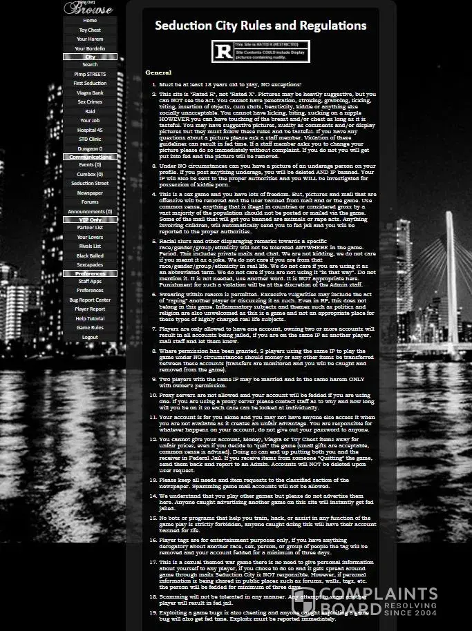My friend advised me to visit the website www. Seduction - city. Net. He told me that he played the game here really often and he liked it. I went and registered on the website. But after several weeks, my account was blocked and i couldn’t access to it. It turned out that the moderators and the owner needed only money, and if you didn’t pay for the services and didn’t buy, you would be blocked. I was shocked with such policy and decided to warn everyone about it. Share this info.