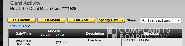 I signed onto my bank account today online and was shocked to see that a company called Segpay made two unauthorized charges to my account. The account was inactive and I only had a few dollars in it. The Segpay charges (one for $4.95 and the other for $39.95 resulted in the bank charging me $70.00 in over draft charges.
