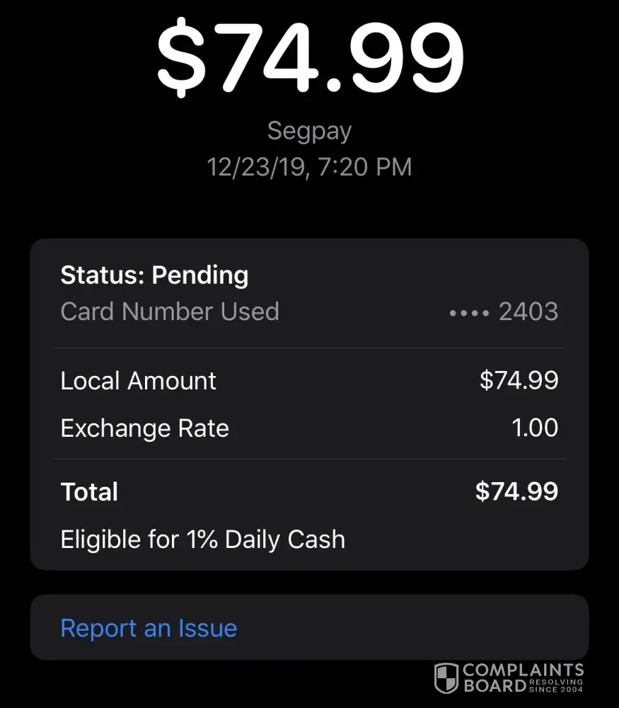 SegPay - unauthorized credit card charge 9