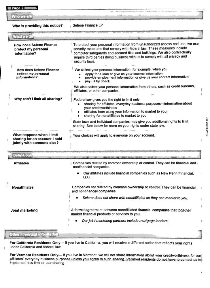 I received a second letter today from Selene (3 pages ft & bk) entitles Service Transfer Information. I guess this is the "welcome package" they told us all about. I tried to upload all pages but, it was too large so, I will do so separately. Keep in mind, my loan was due on 1/1/13. This letter is dated 1/11/13, postmarked 1/14/2013 and received today, 1/16/2013. Please note how the letter is written in future tense and makes reference to Flagstar being my "present servicer" and they, Selene will be my "future servicer." Note the legal verbiage they are required to include.