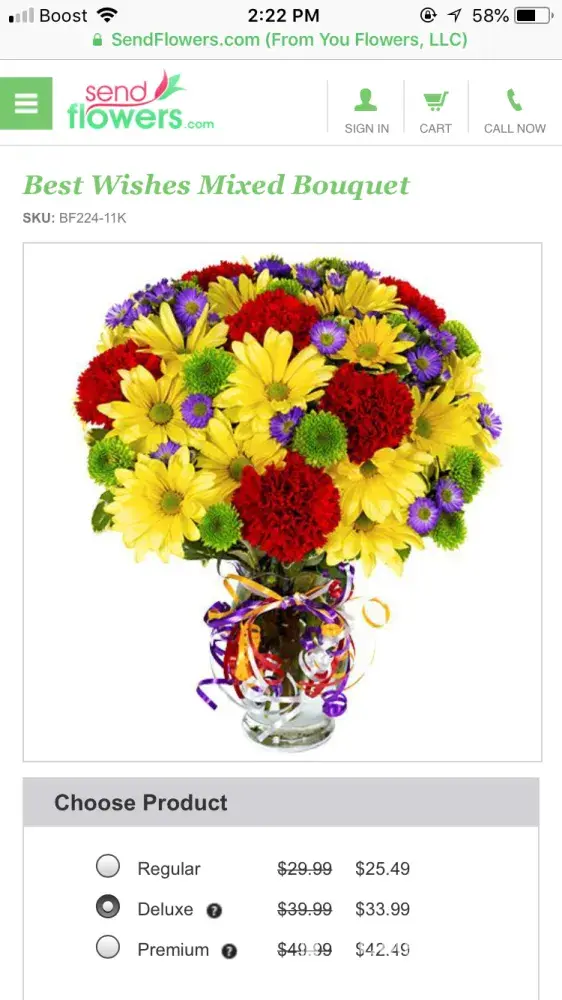 I`ve always sent flowers and gifts online, has always worked well, except this last time I tried another company https://www.sendflowers.com/ to send flowers to a funeral, I ordered it 4 days before the funeral (even though they offer same day delivery) because I wanted to make sure the flowers would be there for my family as I was not able to attend the funeral. A week after the funeral I asked my family if they liked the flowers, they said they never saw my name on any of them... then I contacted https://www.sendflowers.com/ @FlowersSend again and asked about a proof of delivery or something... And that`s when I found out my $45.98usd flowers never made it ...they never send them to the funeral... So If I didn`t contact this @FlowersSend https://www.sendflowers.com/ I would have never known that my order was not even taken! So they were gonna keep my money ! Ofcourse they gave me a huge apologize and offer to upgrade my order and send a bigger flower thing that day...A WEEK AFTER THE FUNERAL...REALLY? I said NO I want my refund! Thy replied they were disappointed at me for that... OH WELL ! So I`m just waiting for my money fully refunded and had to warn people about this site ... they are NOT 100% guarantee as they say.. and they will try to keep your money without telling you anything. BECAREFUL [protected]@FlowersSend they are NOT trustable!