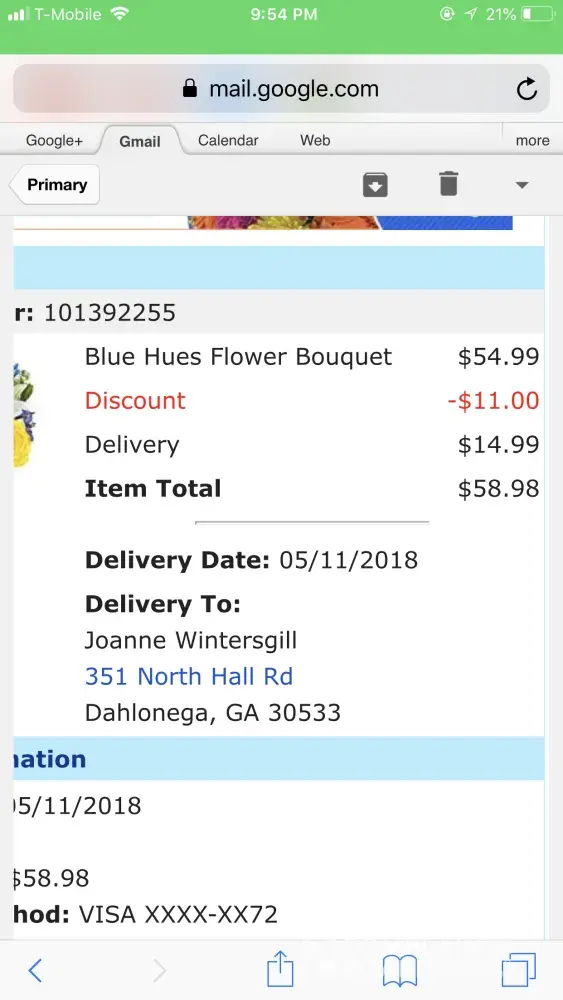 I ordered same day delivery flowers at 11 am. Their site says as long as order before 3 pm they will be delivered that day. At 10:15 pm they still were not delivered. I called and got hung up on. Called again and waited 20 mins just to talk to someone who told me flowers were being delivered Into the night because they were busy. Who the hell delivers or receives flowers at 10pm?! She then tried to tell me I had put my delivery date as the 15th. I told her I was looking at the email from them stating that I was correct in the delivery date being the 11th. She continued to put me on hold to "call the florist" and what not. Came back argued with me again about the date and then when I asked for a refund was told the supervisor was in a meeting and couldn't be interrupted. Seriously? After almost an hour she finally agreed to refund my money. Then told me "no offense but next time pay attention to your delivery date you pick" seriously? I'm attaching a picture showing my delivery date WAS THE 11th. Which I told her. I told her I sent an email to them as well showing the delivery date was NOT the 15th like she was saying. She then tried to tell me that that the zip code couldn't get same day delivery. THEN WHY DID THE WEBSITE OFFER SAME DAY DELIVERY FOR THAT ZIPCODE? This is a horrible company. I run a business myself and if I ever didn't deliver a service I offered I wouldn't be in business anymore! WHY ARE THEY STILL IN BUSINESS? She blamed me and tried to tell me I didn't know what I was doing when ordering the flowers... because it's rocketscience right?! 🙄 This was my first time ordering flowers online. Worst experience and I will never do it again. Do Not use! Don't promise a service if you can't deliver!