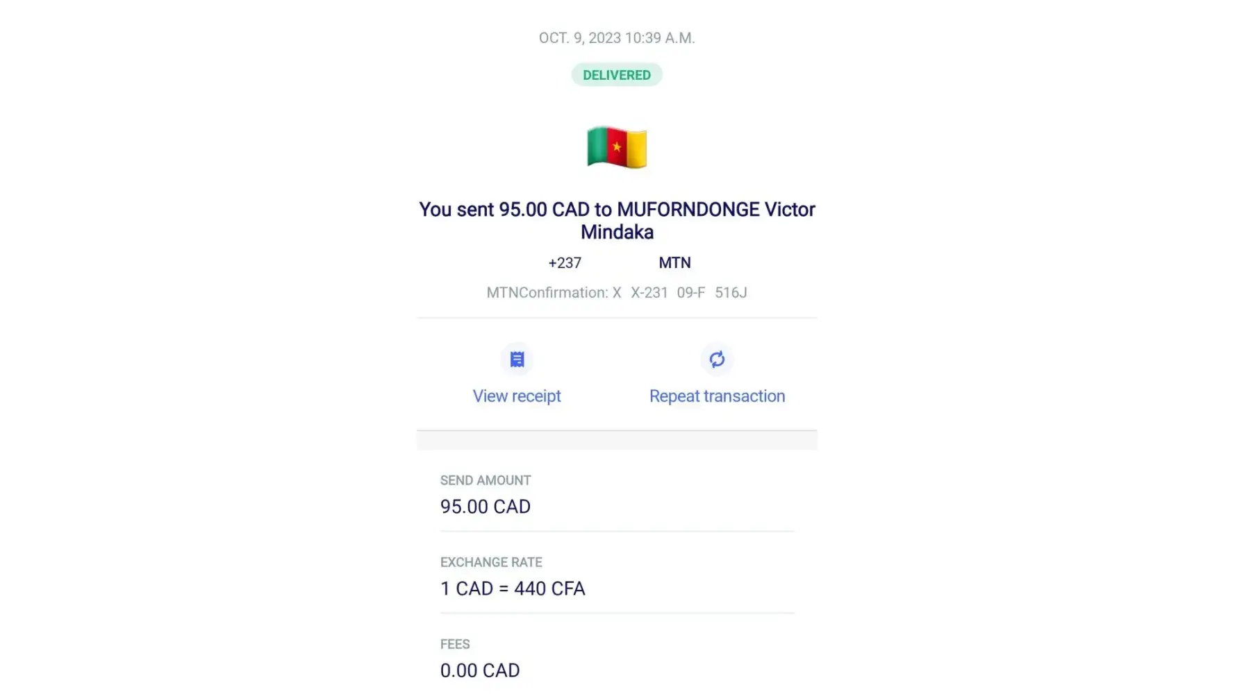 On October 1 sent $100 CAN to someone in Haiti.. today is October 4th