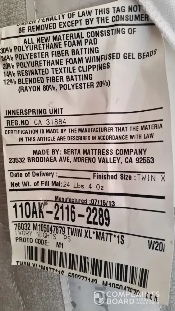 Read full complaintSerta Mattress discomfort - too soft