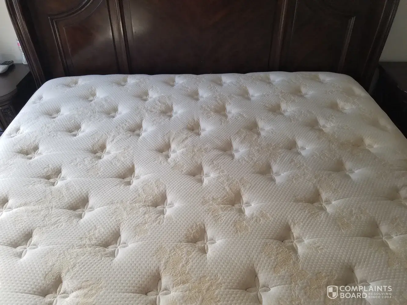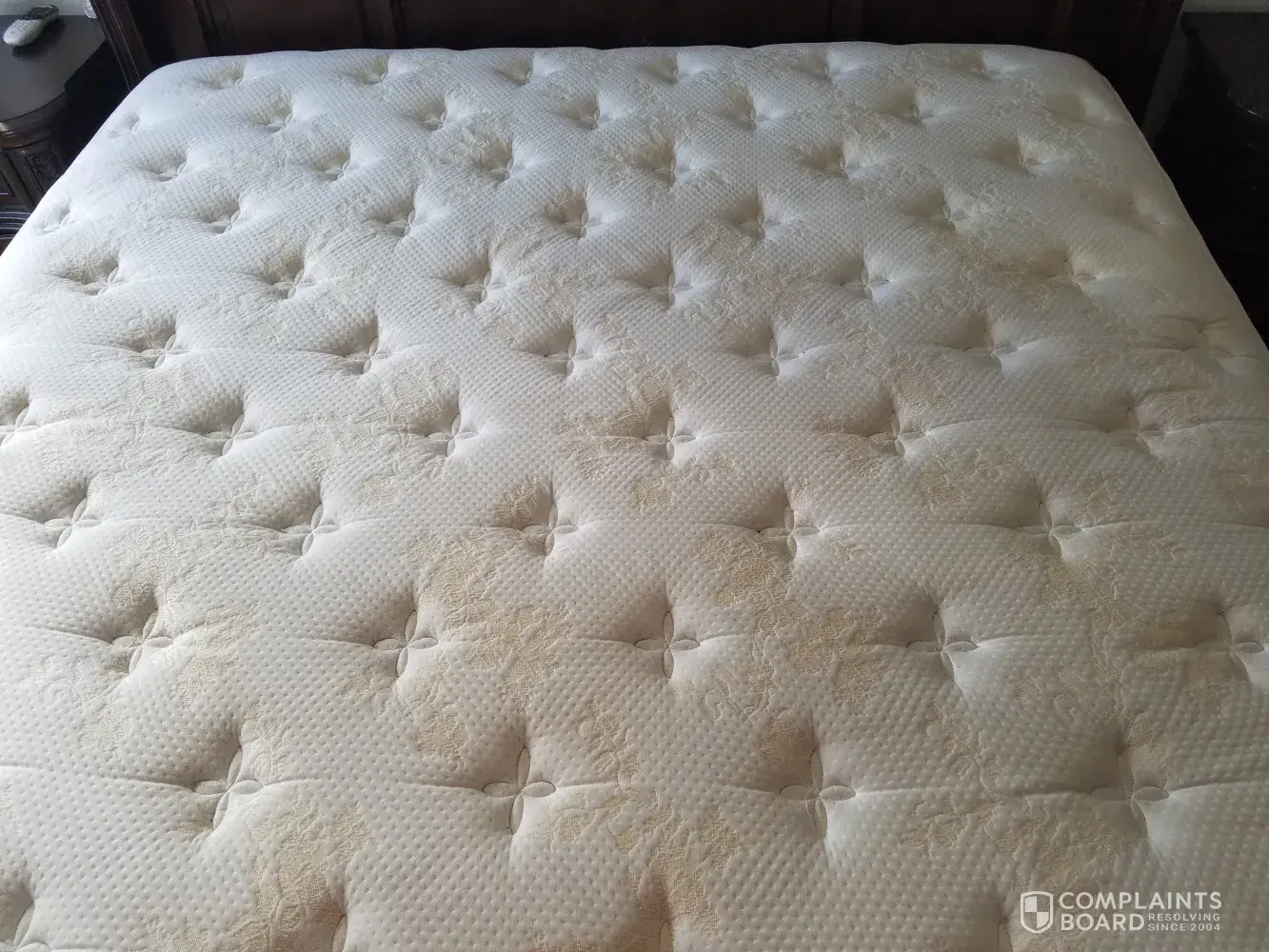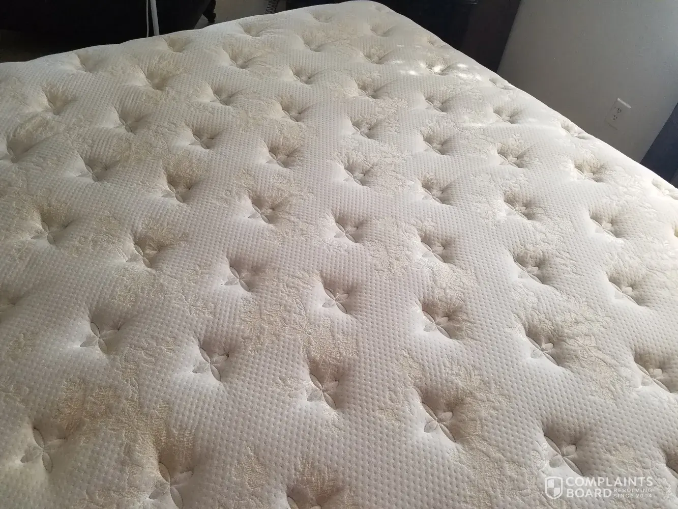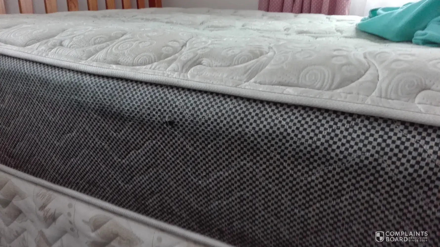 Due to what they call stain even though thr springs came thru ib different places, due to sagging, making 3 different holes the box spring broke so now I will have to file a civil suit here in grand rapids, mi against sertam serta simminos bedding the ones who makes it for them.
