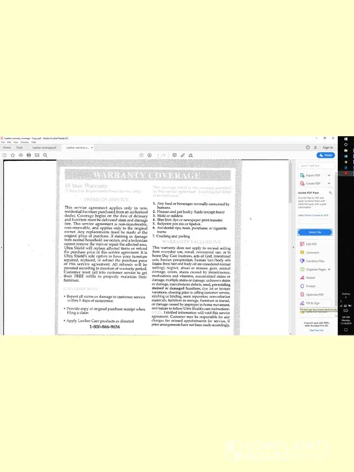 1. My furniture specialist sold me my said Ultra shield (ServeCo North America) 10 year furniture warranty coverage and provided a copy of said warranty.